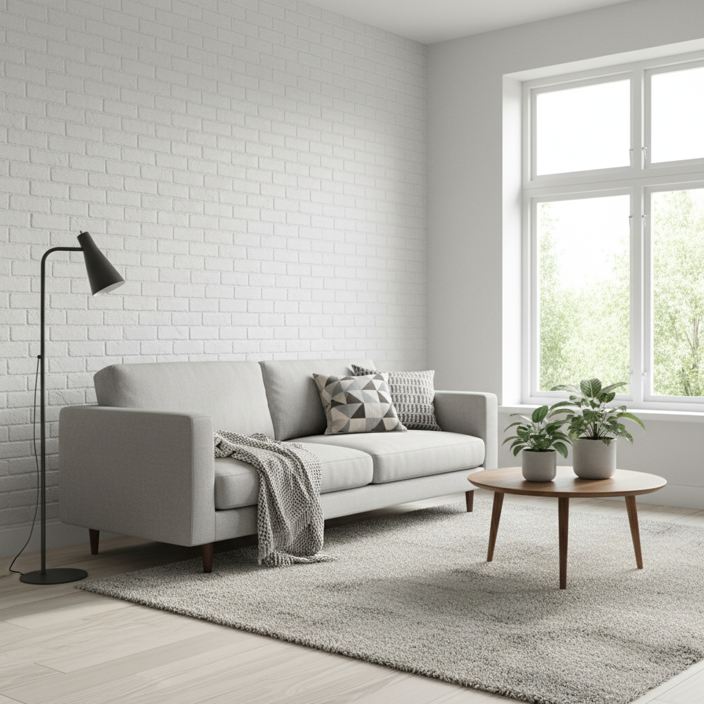 Charakterystycznym i bardzo pożądanym elementem w skandynawskich wnętrzach jest bielona cegła. Jej surowa, nieregularna faktura stanowi fascynujący kontrast dla gładkich powierzchni mebli i ścian. Wprowadza do aranżacji nutę industrialnego loftu, jednocześnie, dzięki białemu kolorowi, zachowując lekkość i jasność. Bielona cegła wygląda szczególnie efektownie na dużej, reprezentacyjnej ścianie w salonie lub sypialni, stając się główną ozdobą pomieszczenia.