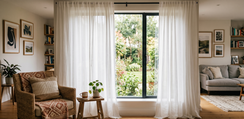 Aby optycznie powiększyć przestrzeń, należy postawić na jasne kolory, lekkie, zwiewne tkaniny i minimalizm w dekoracjach okiennych. To podstawowa zasada, która zawsze się sprawdza. Zamiast ciężkich, wzorzystych kotar, wybierz gładkie, półprzezroczyste materiały, które nie zdominują wnętrza. Kluczowe są również proporcje i sposób montażu. Karnisz zamontowany wysoko, tuż pod sufitem, i szerszy niż sama wnęka okienna sprawi, że okno (i cały pokój) wyda się wyższe i bardziej przestronne. Długie zasłony sięgające samej podłogi również tworzą iluzję wyższego sufitu.