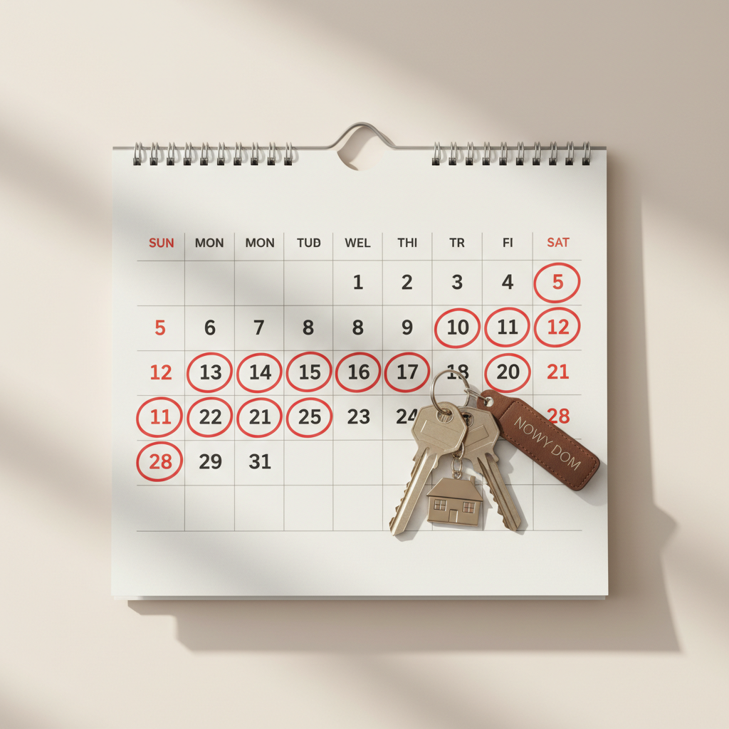Podpisując umowę przedwstępną ze sprzedającym lub deweloperem, musisz określić termin zawarcia ostatecznej umowy w formie aktu notarialnego. Biorąc pod uwagę, że średni czas oczekiwania na kredyt to miesiąc, a proces może się wydłużyć, kluczowe jest ustalenie tego terminu z „dużym zapasem”. Bezpieczny bufor to co najmniej 60-90 dni. Da Ci to spokój i pewność, że nawet w przypadku nieprzewidzianych opóźnień po stronie banku, zdążysz sfinalizować transakcję.