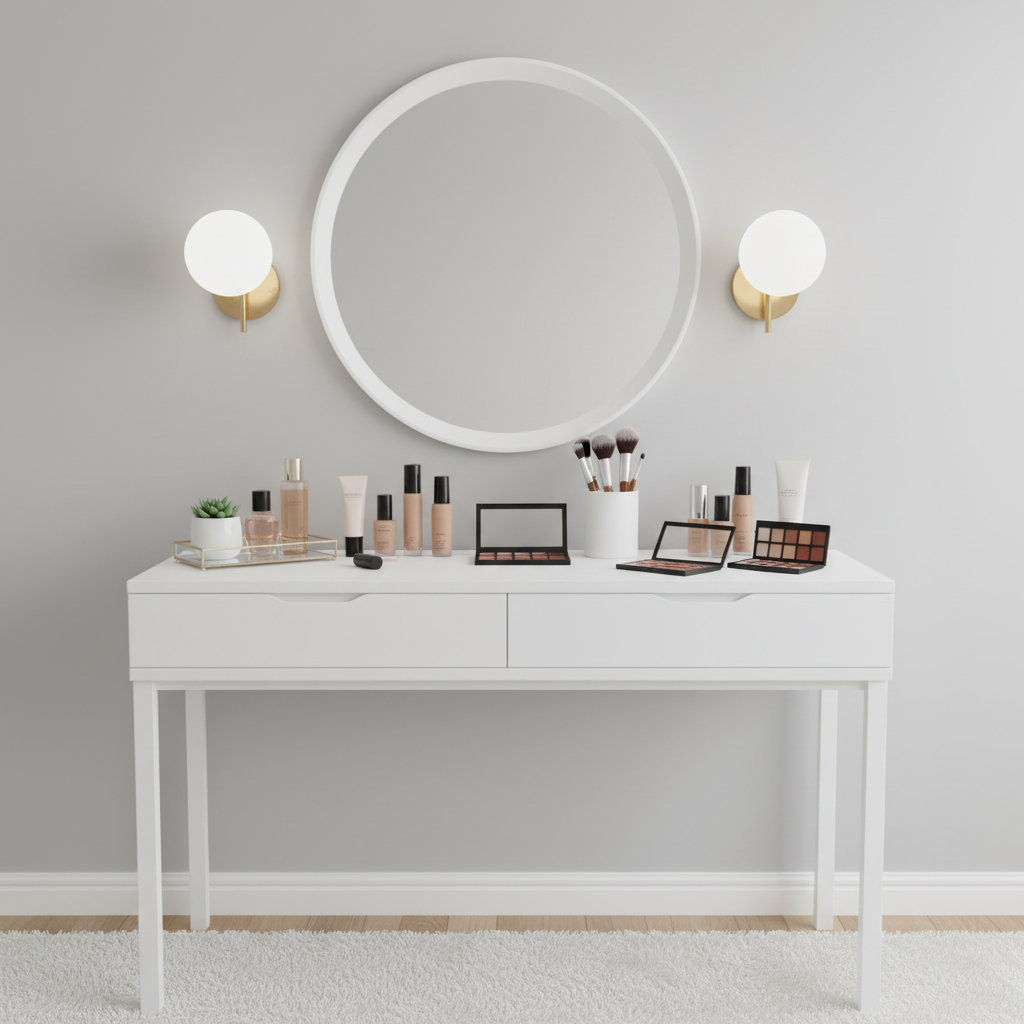 Jeśli w sypialni znajduje się toaletka, jej prawidłowe oświetlenie jest kluczowe dla komfortu wykonywania makijażu czy pielęgnacji. Największym błędem jest montaż oświetlenia bezpośrednio nad lustrem, ponieważ tworzy ono ostre cienie pod oczami, nosem i na szyi. Aby tego uniknąć, należy dążyć do oświetlenia twarzy z przodu.
