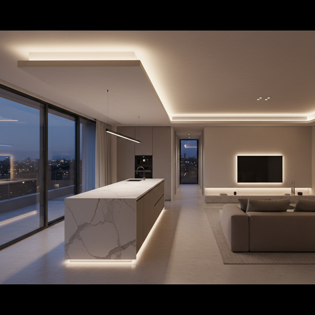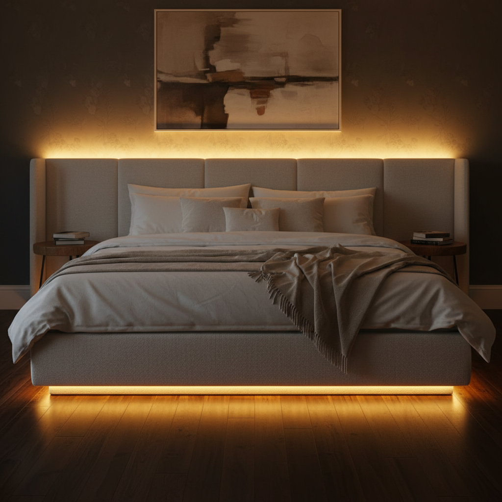 Sypialnia to nasza prywatna oaza spokoju, a odpowiednie światło jest kluczem do stworzenia atmosfery sprzyjającej relaksowi. Taśmy LED zamontowane za zagłówkiem łóżka lub pod jego ramą rzucają na ściany i podłogę miękką, intymną poświatę. Taki rodzaj oświetlenia jest idealny do wieczornego czytania lub wyciszenia się przed snem. Sterowanie barwą i natężeniem światła za pomocą pilota pozwala na idealne dopasowanie klimatu do nastroju.