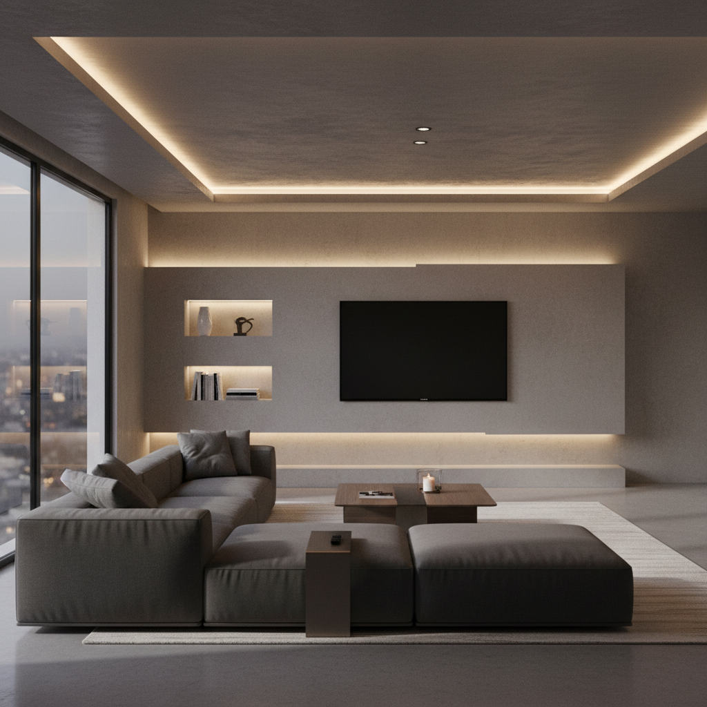 Salon to serce domu, a taśmy LED potrafią nadać mu prawdziwie reprezentacyjny charakter. Jednym z najpopularniejszych zastosowań jest montaż oświetlenia w sufitach podwieszanych. Ukryte w specjalnych gzymsach paski LED tworzą efekt świetlnej łuny, która optycznie powiększa pomieszczenie i nadaje mu głębi. Inne popularne pomysły to: