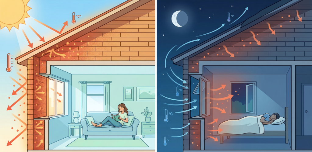 Drugim, często niedocenianym, a niezwykle ważnym parametrem jest akumulacyjność cieplna. Określa ona zdolność materiału do magazynowania (akumulowania) ciepła. Materiały o wysokiej akumulacyjności, takie jak Silikaty, działają jak naturalny bufor termiczny dla całego budynku. Co to oznacza w praktyce?