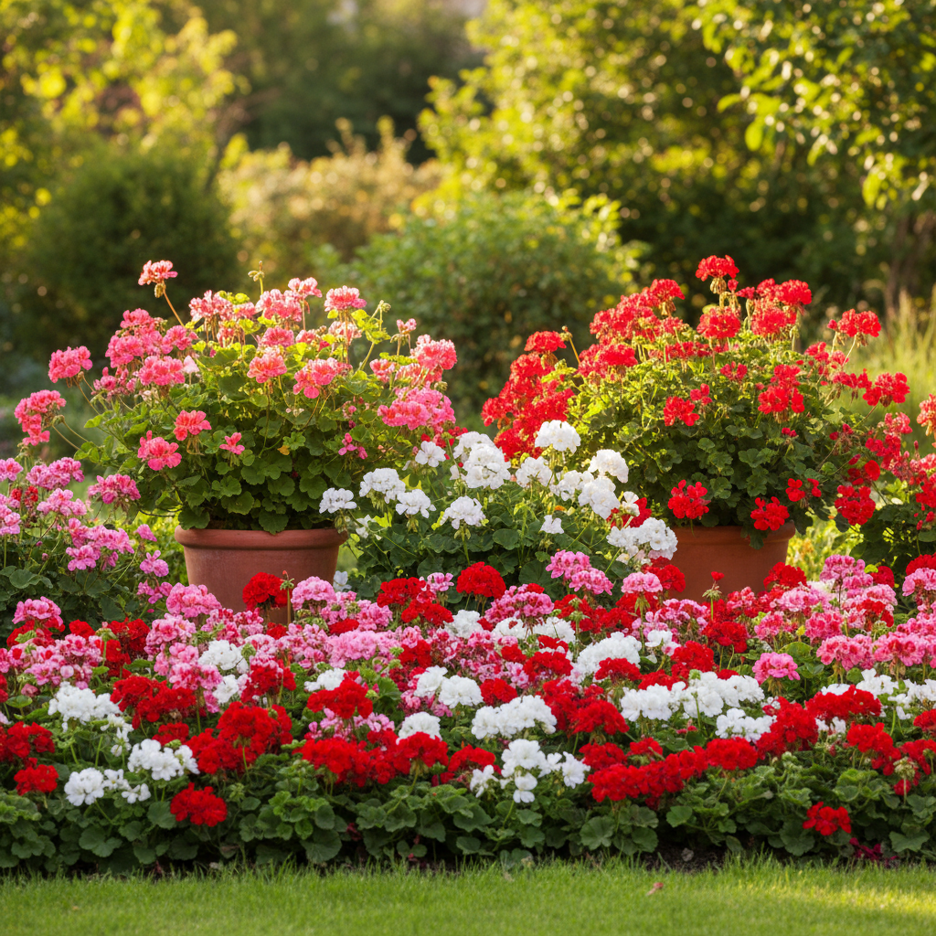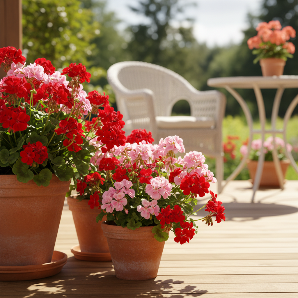 Oprócz odmian zwisających, na taras doskonale nadają się również wspomniane wcześniej pelargonie rabatowe o bardziej zwartym pokroju. Uprawiane w donicach, tworzą bujne, kolorowe kule. Kwiaty w donicach wymagają nieco więcej uwagi, jeśli chodzi o podlewanie i nawożenie, ale odwdzięczają się nieprzerwanym kwitnieniem przez cały sezon.