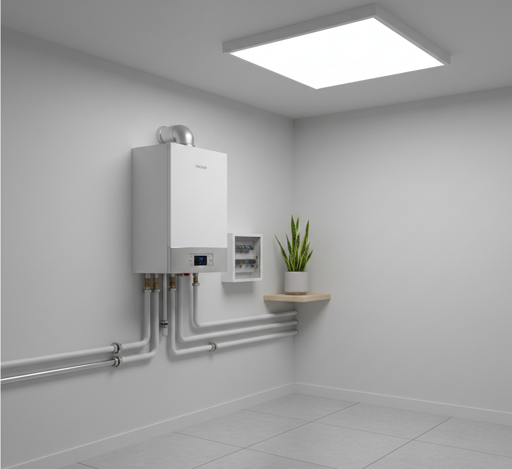 Definicja: To tradycyjne rozwiązanie, w którym kocioł pobiera powietrze potrzebne do spalania bezpośrednio z pomieszczenia, w którym jest zainstalowany (np. z kotłowni, kuchni czy łazienki). Spaliny odprowadzane są grawitacyjnie do przewodu kominowego.