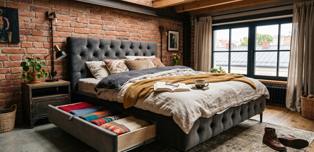To prawdziwy klasyk i jeden z najskuteczniejszych sposobów na zyskanie ogromnej ilości miejsca. Przestrzeń pod łóżkiem, która standardowo pozostaje niewykorzystana, zamienia się w potężny schowek. Dostępne są różne rozwiązania: