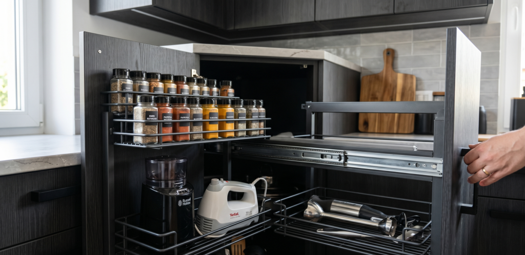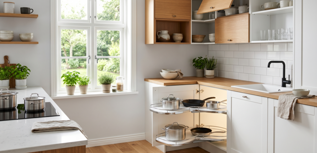 W co wyposażyć kuchenne szafki narożne? Przewodnik po inteligentnych rozwiązaniach