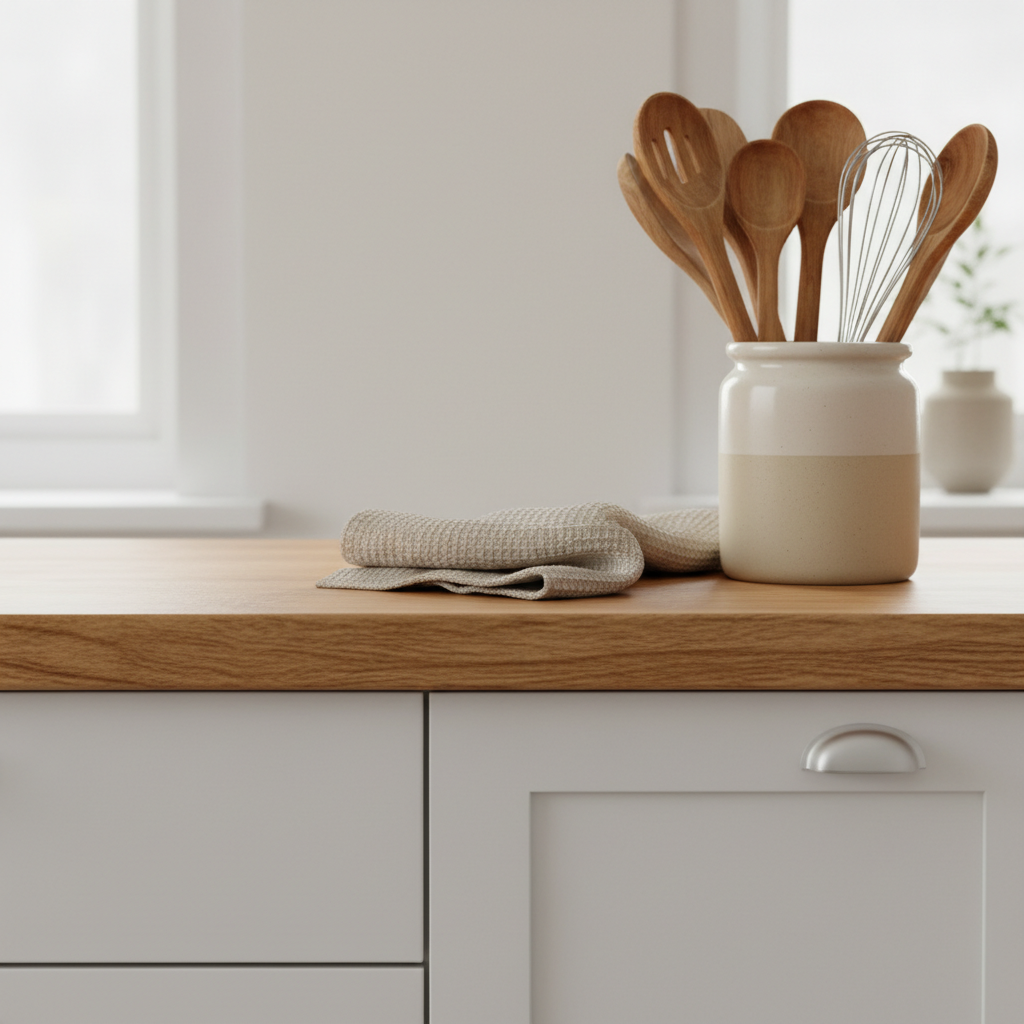 Nic tak nie ociepla wnętrza jak naturalne materiały. Drewno to absolutny sprzymierzeniec białej kuchni. Może pojawić się pod postacią blatu, podłogi, otwartych półek, a nawet frontów części szafek. Ciepły odcień dębu, orzecha czy jesionu wprowadzi do wnętrza harmonię i spokój, tworząc idealny balans dla chłodnej bieli. Nawet drobne drewniane akcenty, jak uchwyty szafek, misy na owoce czy pojemniki na przyprawy, zrobią ogromną różnicę.