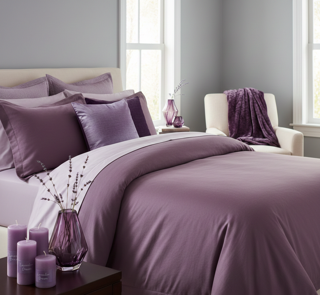 Aby fioletowa pościel idealnie wkomponowała się w aranżacje wnętrz, warto zadbać o spójność. Nie oznacza to jednak malowania ścian na fioletowo. Wręcz przeciwnie – pozwól pościeli grać pierwsze skrzypce. Harmonijny i kobiecy efekt osiągniesz, dobierając kilka subtelnych dodatków w tym samym kolorze. Mogą to być dekoracyjne poduszki, aksamitna narzuta niedbale rzucona na fotel, świece o zapachu lawendy czy szklany wazon w odcieniu ametystu. Takie drobne akcenty stworzą wizualne połączenie i sprawią, że cała aranżacja będzie wyglądać na przemyślaną i niezwykle wdzięczną.