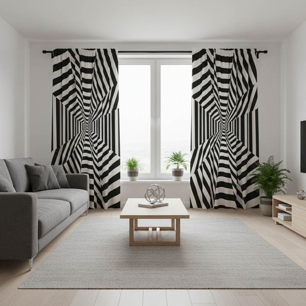Dla miłośników odważnych, niekonwencjonalnych rozwiązań idealną propozycją będą zasłony w szalone wzory inspirowane stylem op-art. Geometryczne, iluzjonistyczne printy, mocne kontrasty i dynamiczne linie to gwarancja stworzenia wnętrza, które nikogo nie pozostawi obojętnym. Taki wybór wymaga jednak dużej konsekwencji w całej aranżacji salonu. Aby uniknąć wizualnego chaosu, kluczowe jest, aby obicia mebli, dywan czy ozdobne poduszki utrzymane były w zbliżonej lub komplementarnej kolorystyce. Można na przykład zdecydować się na zasłony w czarno-białe wzory i dobrać do nich gładką, szarą sofę z poduszkami w intensywnym, jednolitym kolorze zaczerpniętym z innej części aranżacji. Tkaniny o tak wyrazistym charakterze oferuje między innymi holenderska firma Bernard Reyn B.V., znana z odważnego wzornictwa.