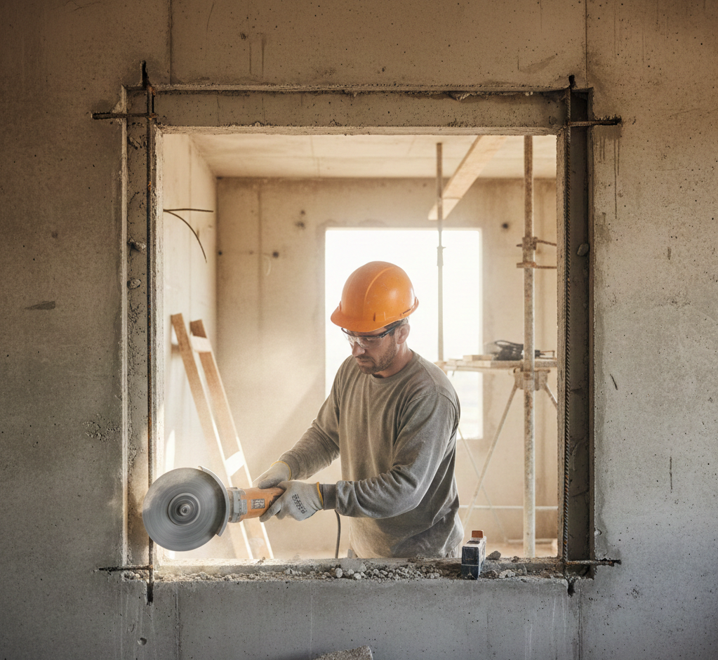 Po całkowitym stwardnieniu pianki (czas schnięcia podany jest w instrukcji producenta, zazwyczaj kilka godzin), jej nadmiar, który „wyszedł” poza obrys szczeliny, należy odciąć ostrym nożem, wyrównując go z płaszczyzną muru i ościeżnicy.