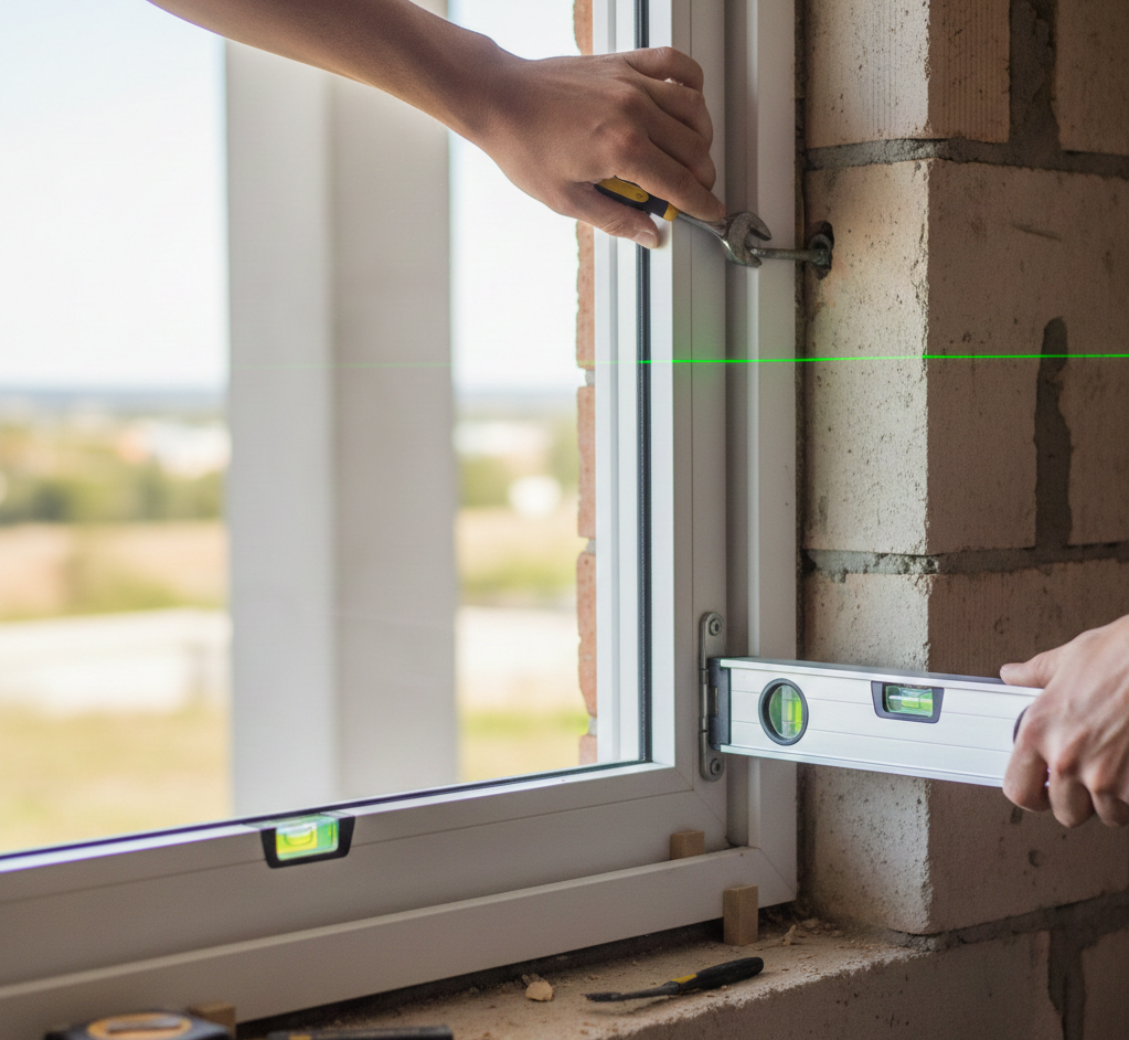 Teraz można ponownie założyć skrzydła okienne na zawiasy w zamocowanej ościeżnicy. Po tej czynności należy przeprowadzić dokładny test działania okna. Sprawdzamy, czy skrzydło otwiera się i zamyka płynnie, bez żadnych oporów czy ocierania o ramę. Testujemy funkcję uchylania oraz sprawdzamy, czy klamka pracuje lekko w każdej pozycji. To ostatni moment na ewentualne, drobne korekty regulacji na okuciach, które zapewnią idealne dopasowanie skrzydła do ościeżnicy.