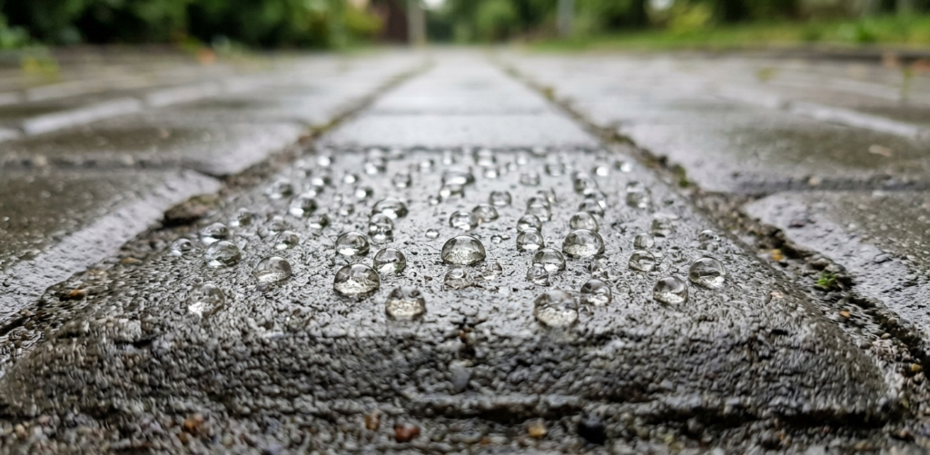 To kluczowa funkcja impregnatu w kontekście przygotowań do zimy. Polbruk Efekt działa na zasadzie głębokiej penetracji struktury betonu i tworzenia wewnątrz niej hydrofobowej bariery. Oznacza to, że pory materiału zostają zabezpieczone przed wnikaniem wody, ale jednocześnie nie są całkowicie zablokowane. Dzięki temu materiał może „oddychać” – para wodna może swobodnie odparowywać z jego wnętrza, co zapobiega jej kondensacji pod powierzchnią.