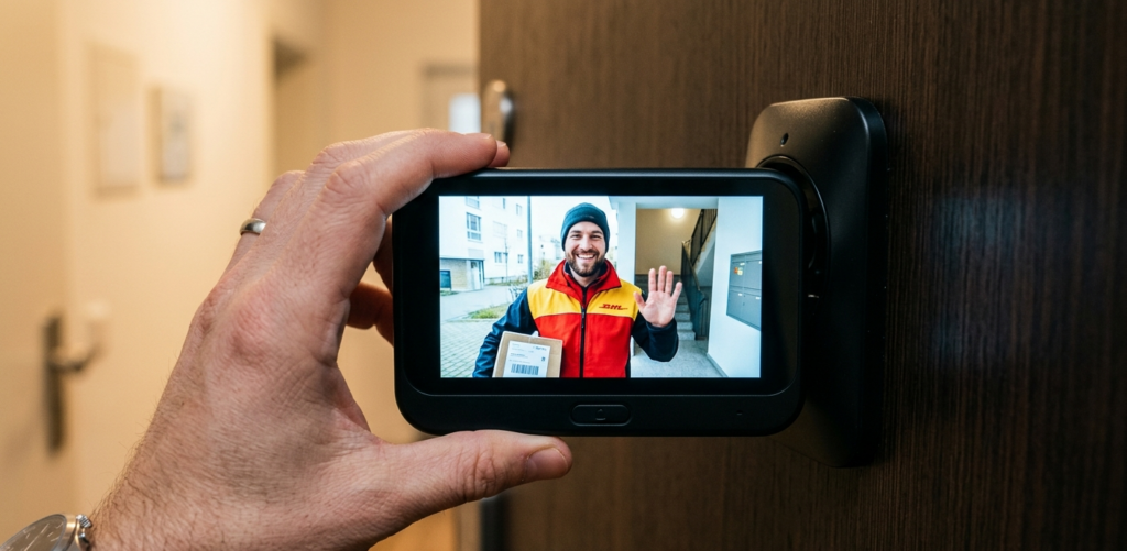 Wizjer elektroniczny to małe urządzenie składające się z kamery montowanej na zewnątrz drzwi i dużego, kolorowego wyświetlacza LCD po wewnętrznej stronie. Jego zalety są nie do przecenienia: