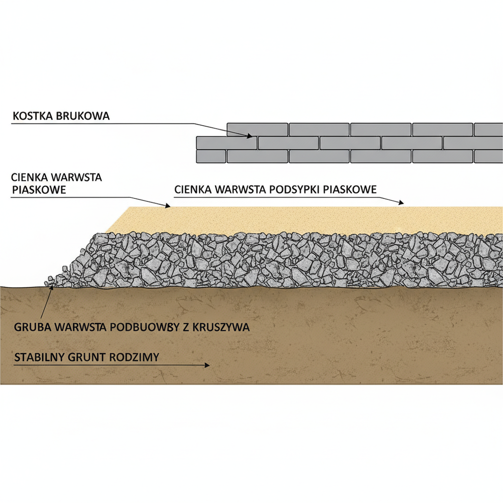 Nawet najgrubsza kostka nie spełni swojej roli bez solidnie wykonanej podbudowy. To właśnie podbudowa przenosi obciążenia z nawierzchni na grunt rodzimy i zapewnia stabilność całej konstrukcji.