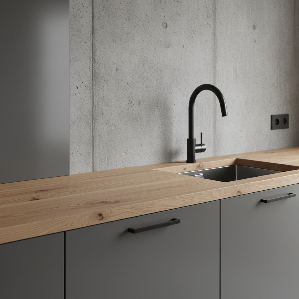 Jak już wielokrotnie wspomnieliśmy, naturalne drewno jest niezastąpionym partnerem dla niemal każdej palety barw w nowoczesnej kuchni. Jego ciepło i unikalna faktura przełamują surowość minimalistycznych form, dodając wnętrzu przytulności i życia. Oprócz drewna, warto rozważyć inne materiały: