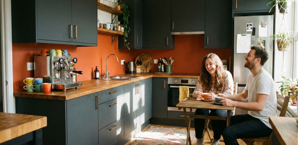 Decyzja o pomalowaniu ścian na soczystą zieleń, energetyczną czerwień czy głęboki granat to coś więcej niż tylko wybór estetyczny. To deklaracja stylu i osobowości. Odważne kolory ścian pozwalają stworzyć wnętrze, które jest niepowtarzalne i w pełni spersonalizowane. Taka kuchnia staje się przestrzenią dynamiczną, która pobudza kreatywność i poprawia nastrój każdego dnia. To idealne rozwiązanie dla amatorów niestandardowych rozwiązań, którzy chcą, aby ich wystrój kuchni wyróżniał się i opowiadał historię o nich samych.