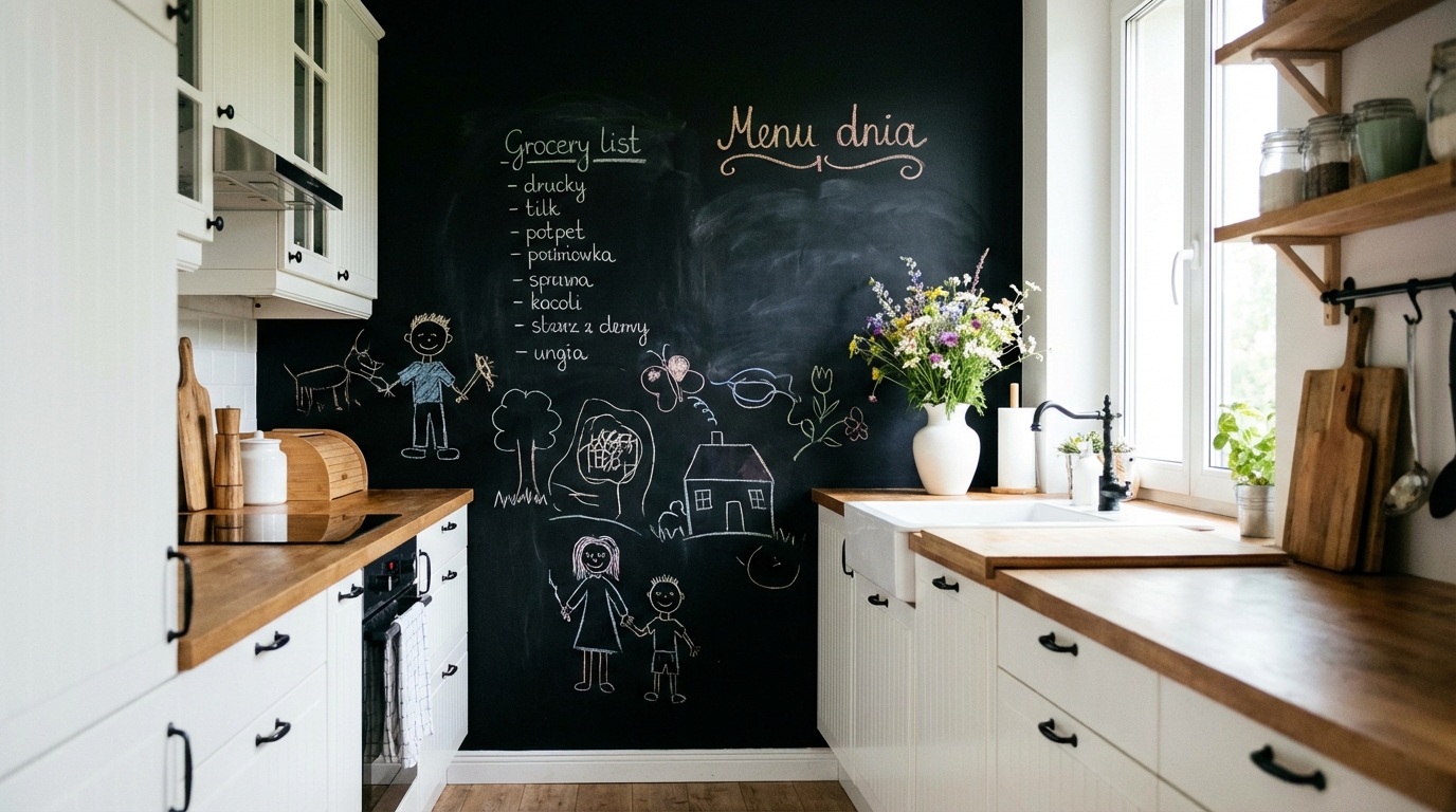 Ściana tablicowa to idealne rozwiązanie do kuchni. Może służyć jako: