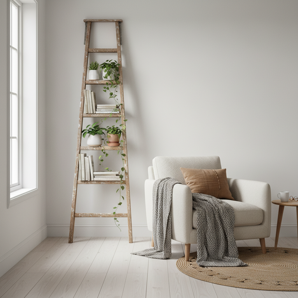 Regał z drabiny to niezwykle funkcjonalna ozdoba wnętrza. Zajmuje niewiele miejsca, a pomieści zaskakująco dużo rzeczy. Możesz ją wykorzystać jako: